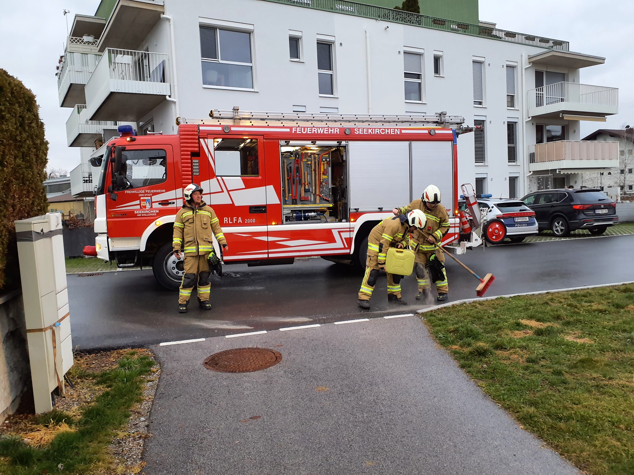 Die Feuerwehr Seekirchen wurde um 17:49 zu einer Ölspur in die Max-Gandolf-Straße alarmiert.