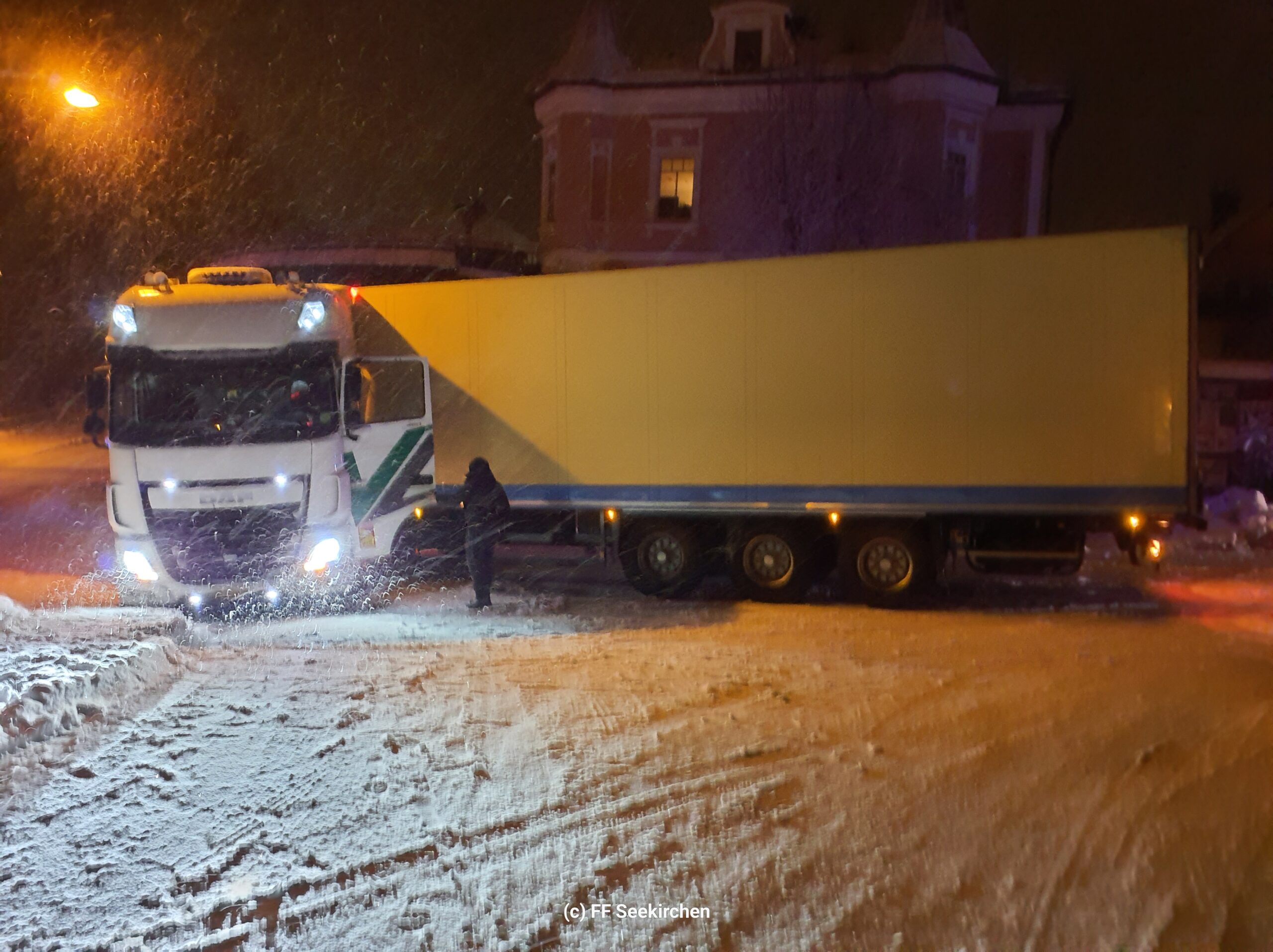 Die Feuerwehr Seekirchen wurde um 22:31 Uhr zur Bergung eines Sattelzugfahrzeugs gerufen.
