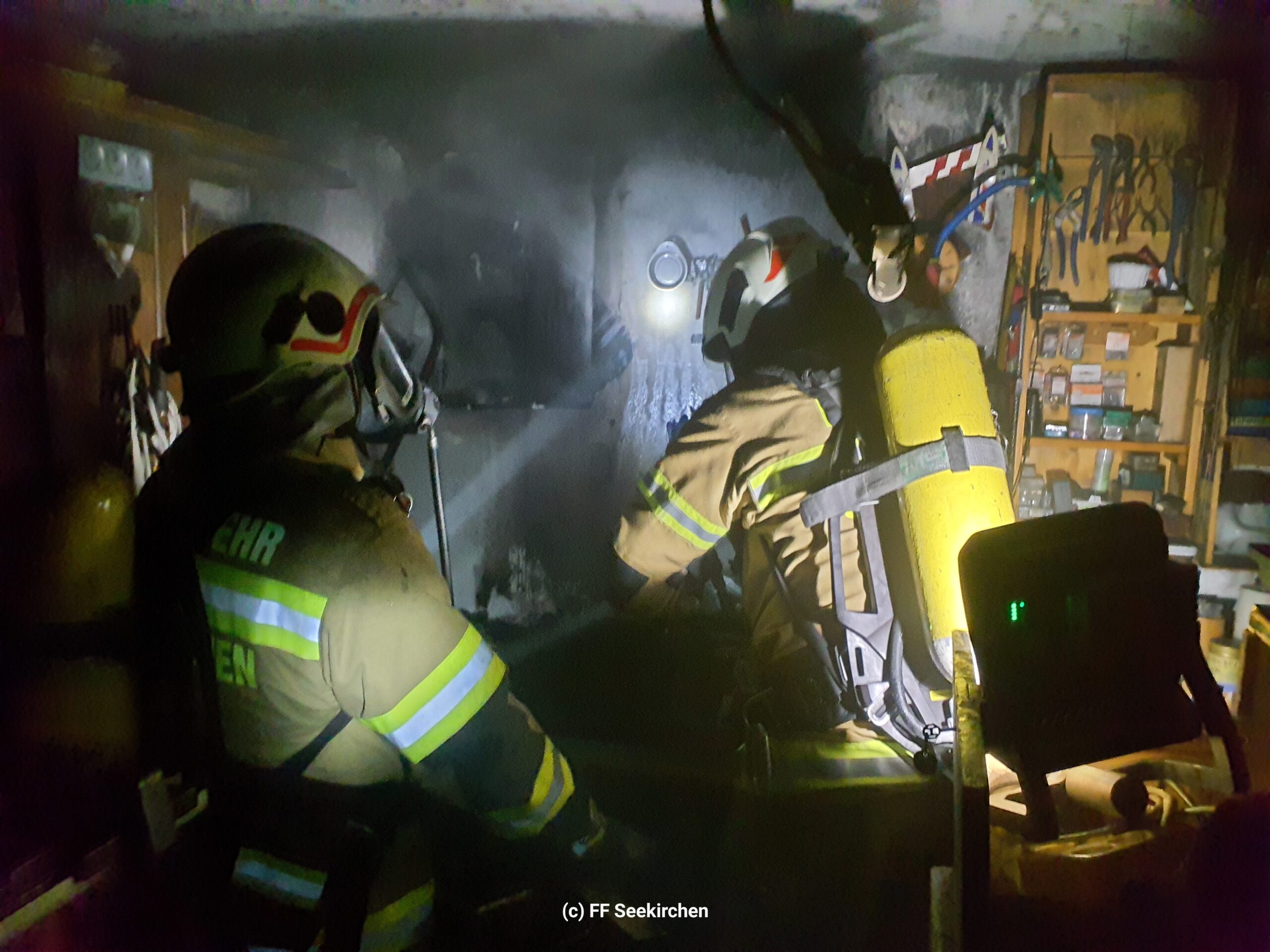 Die Feuerwehr Seekirchen wurde mit der Hauptwache und dem Löschzug Wirthenstätten zu einem Kellerbrand in die Weinbergstraße alarmiert.