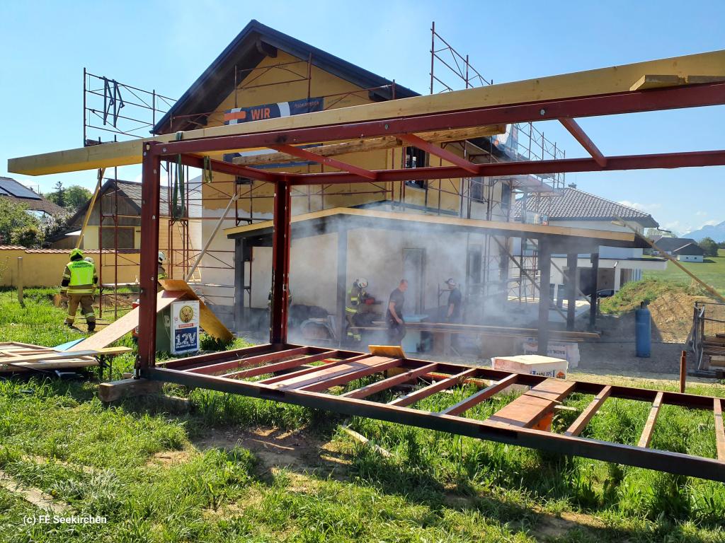 Um 10:35 Uhr wurde die Feuerwehr Seekirchen mit Löschzug Schöngumprechting und Hauptwache zu einem Fassadenbrand nach Bruderstatt alarmiert.