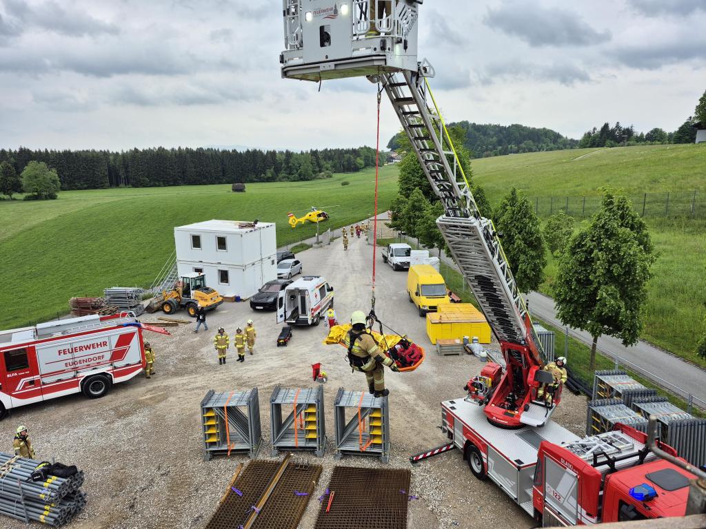 Die Drehleiter Seekirchen wurde gemeinsam mit der Feuerwehr Eugendorf zu einer Personenrettung auf einer Baustelle gerufen.
