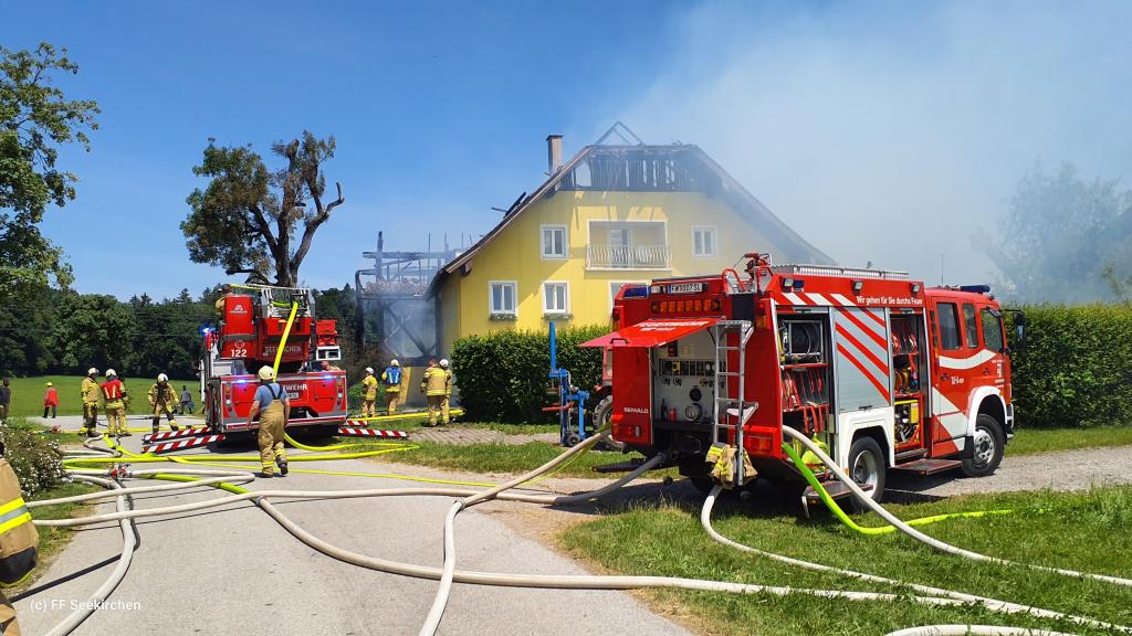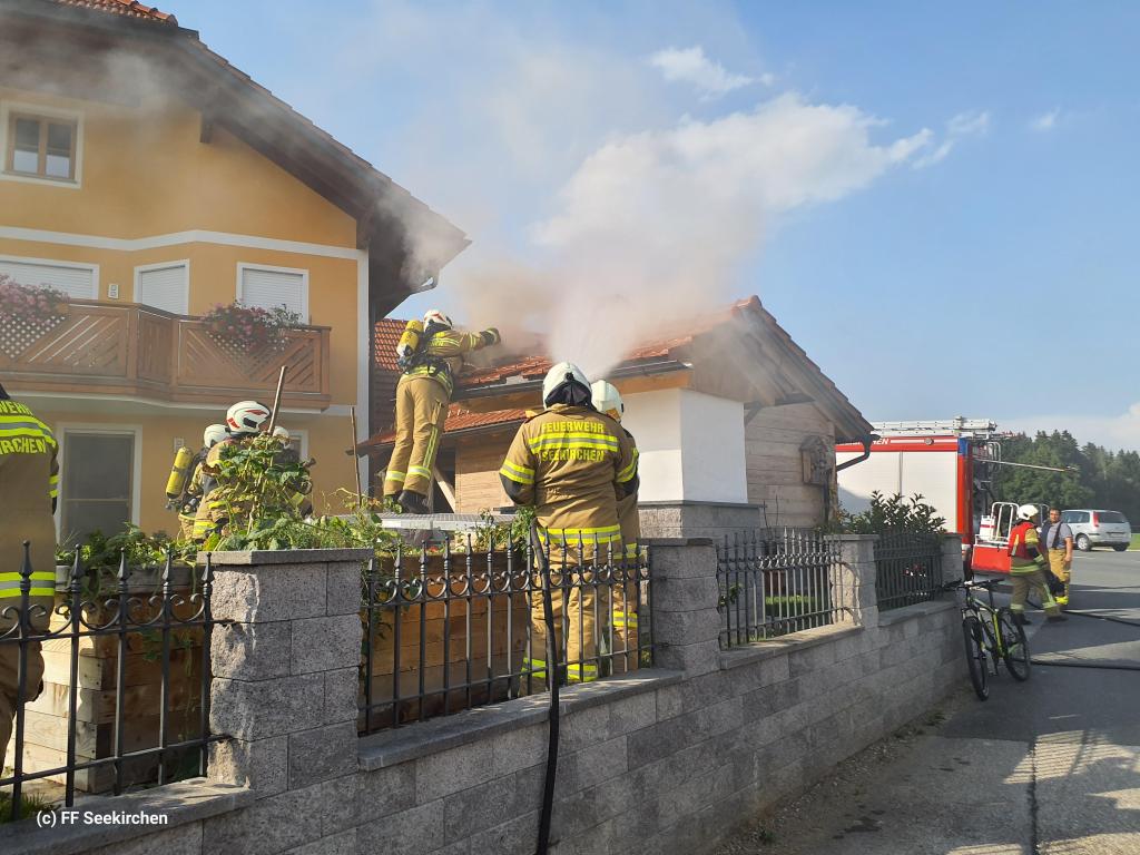 Die Hauptwache der Feuerwehr Seekirchen mit dem Löschzug Wirthenstätten rückte mit der Alarmierung „Dachstuhlbrand“ um 16:51 Uhr im Gemeindegebiet aus.