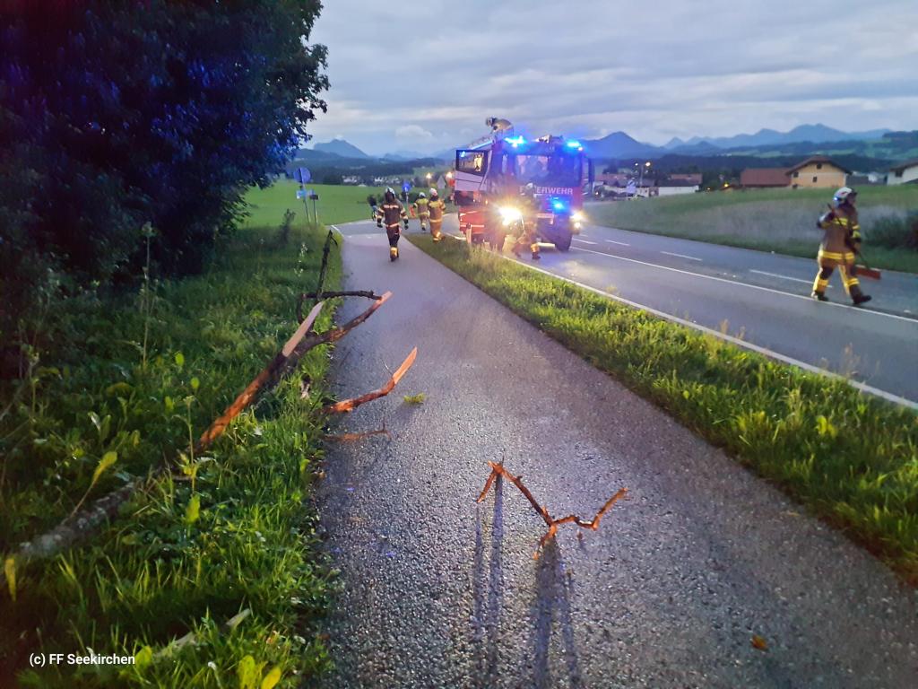 Der Löschzug Mödlham und die Hauptwache der Feuerwehr Seekirchen wurden um 17:09 Uhr zu einem Baum über Straße im Kirchholz alarmiert.