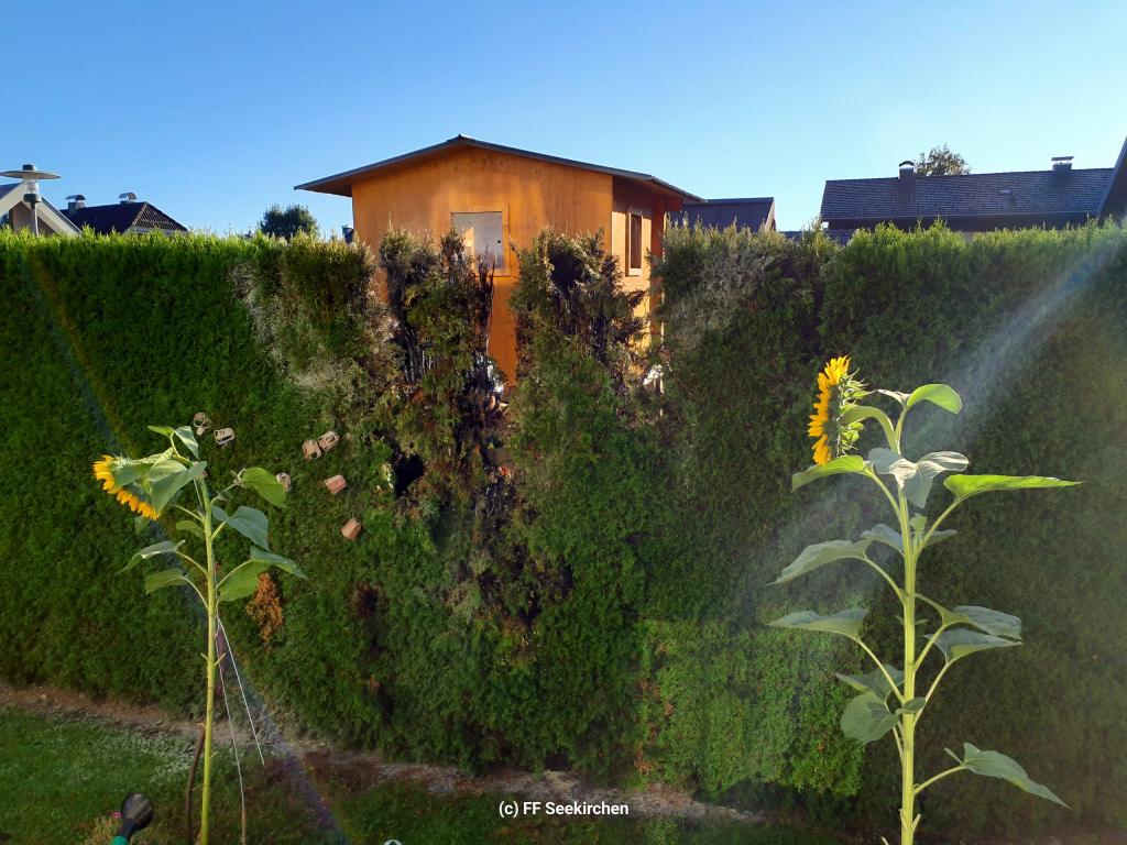 Brand einer Hecke die durch die Mannschaft von RLF nachgelöscht wurde.