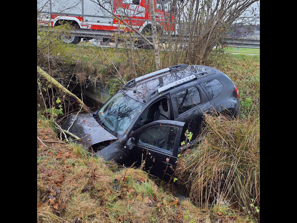 Durch plötzlich auftretende winterliche Fahrverhältnisse ereignete sich im Bereich des Hundeabrichteplatzes Kirchenholz ein Verkehrsunfall mit eingeklemmter Person.