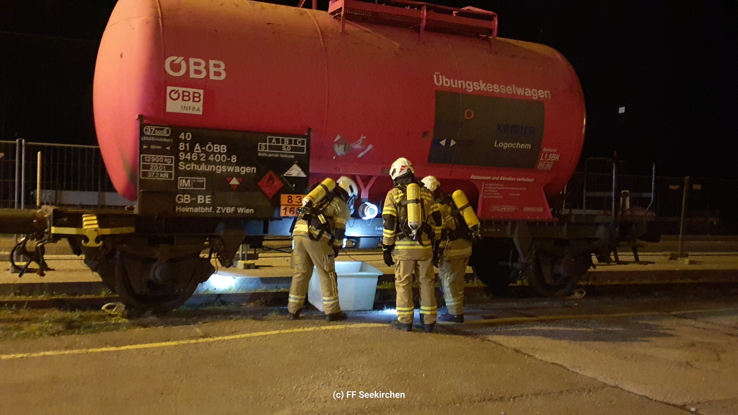 Vergangene Woche fand in Straßwalchen eine realitätsnahe und hochkarätige Gefahrgutschulung statt. Dank der ÖBB stand den Einsatzkräften der Übungskesselwagen im Gleisbereich zur Verfügung. Eine hervorragende Möglichkeit, um das Verhalten bei flüssigen Gefahrgutaustritten unter realen Bedingungen zu trainieren.