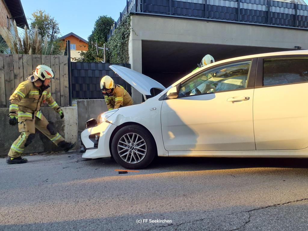 Die Feuerwehr Seekirchen wurde um 17:08 Uhr zu einem Einsatz (Aufräumen nach Verkehrsunfall) alarmiert. Beim Eintreffen des ersten Fahrzeuges wurde ein PKW der mit einer Betonwand kollidiert war vorgefunden. Der Fahrer wurde bereits durch die Rettung betreut. Die Aufgaben der Feuerwehr konzentrierten sich auf Absperren und Binden von Betriebsmitteln, sowie Zusammenräumen der Unfallstelle. Nachdem die Unfallstelle durch die Polizei freigeben wurde, wurde der PKW auf eine sichern Verkehrsfläche geschoben und abgestellt.