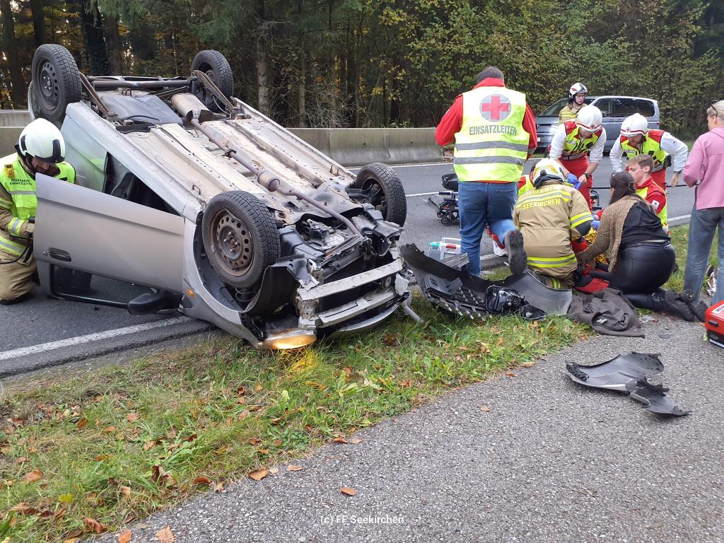 Am Allerheiligennachmittag wurde die FF Seekirchen zu einem vorerst vermuteten Fahrzeugbrand alarmiert. Nach Ersterkundung durch den Einsatzleiter stellte sich heraus, dass es sich um einen Fahrzeugüberschlag mit 2 verletzten Person handelt. Die Verletzten wurden bei Eintreffen der Feuerwehr bereits von Ersthelfern betreut.