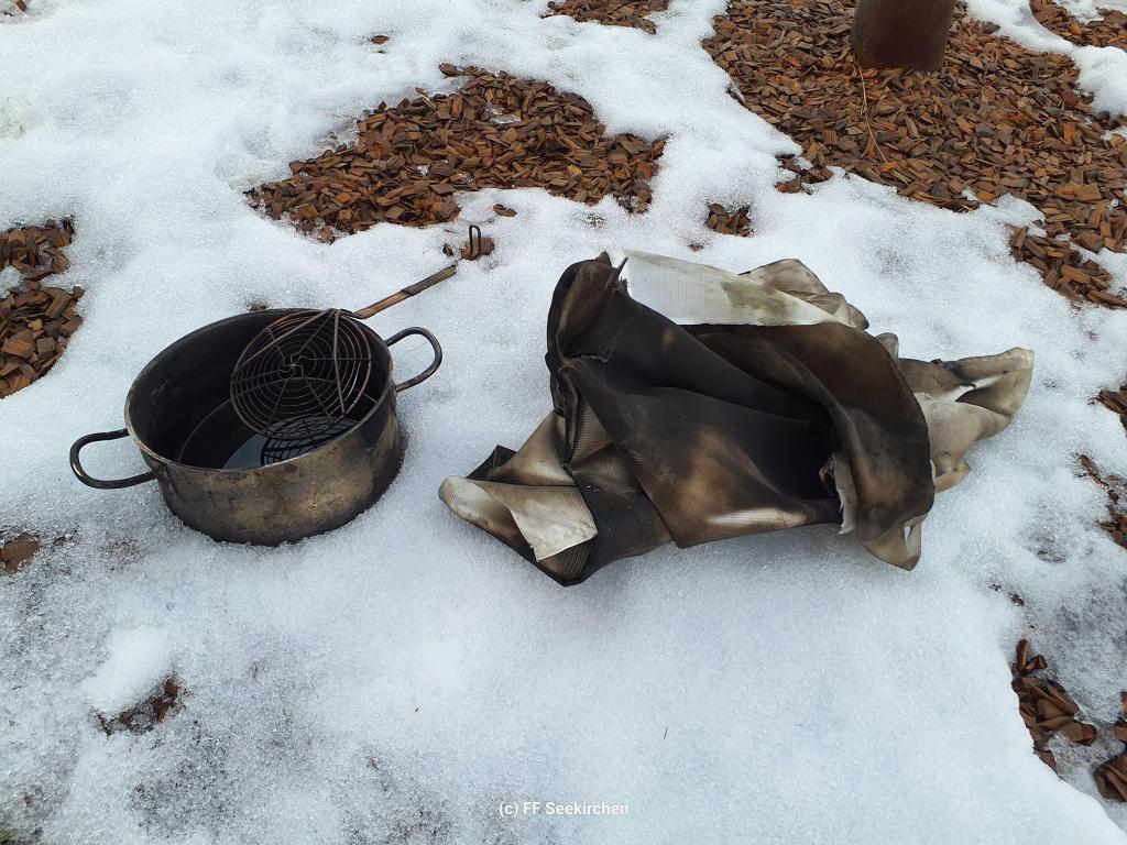 Sauerstoffentzug: Deckel auf den Topf legen oder – wie vom Personal der Sonneninsel perfekt demonstriert – eine Löschdecke verwenden.